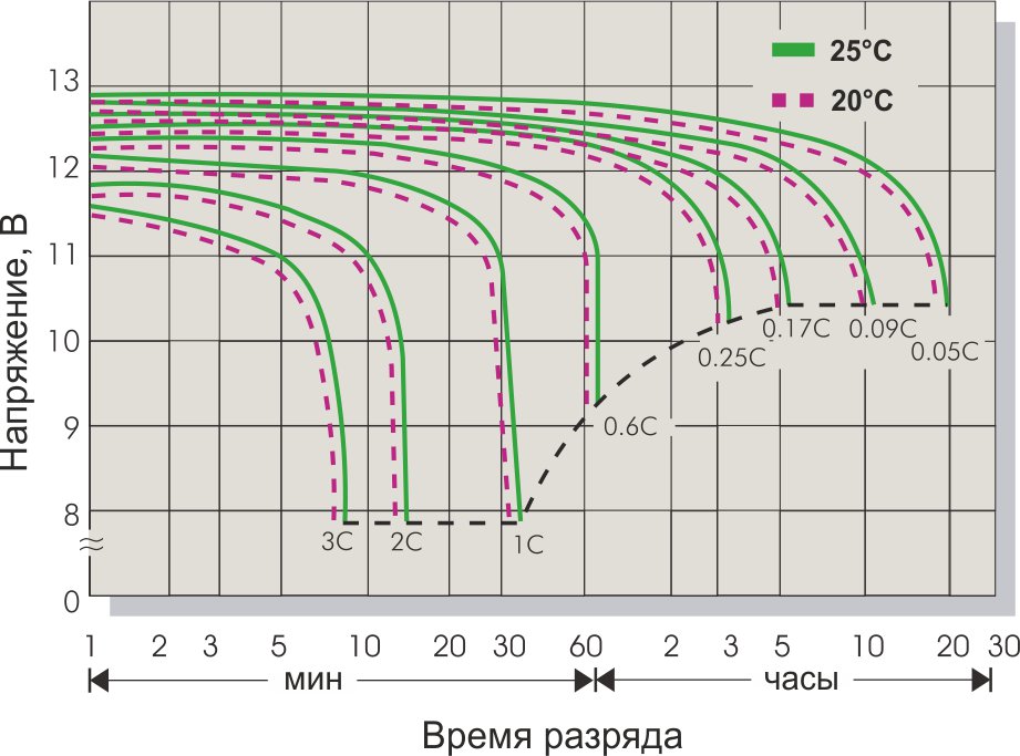 Розрядні характеристики акумуляторних батарей серії GP та HR